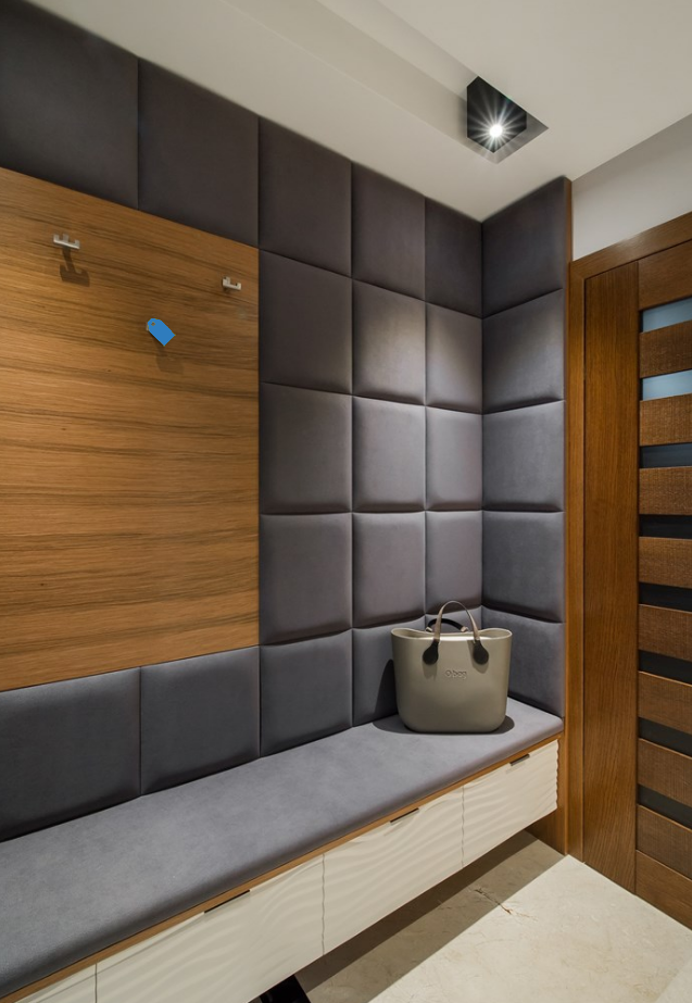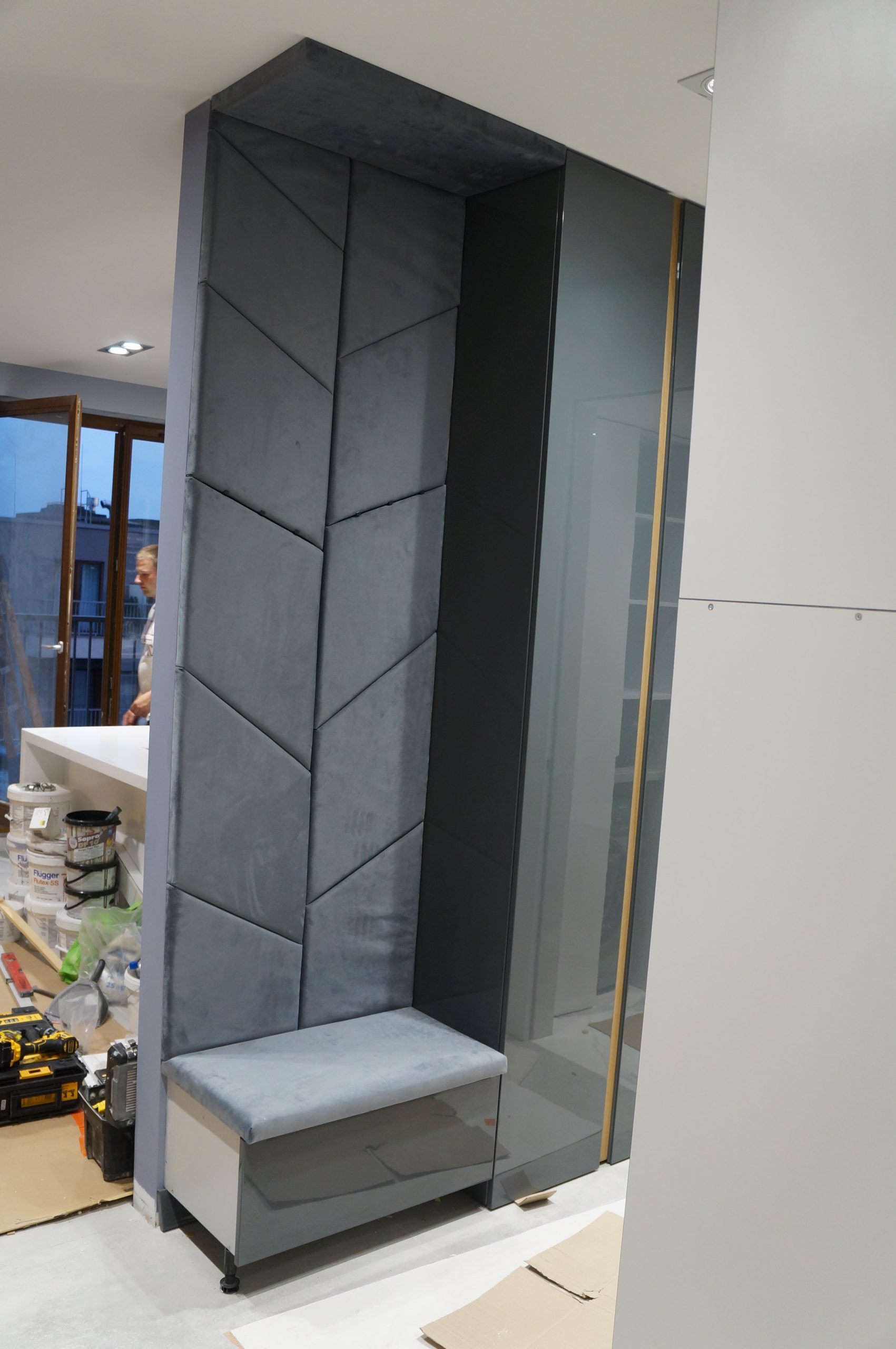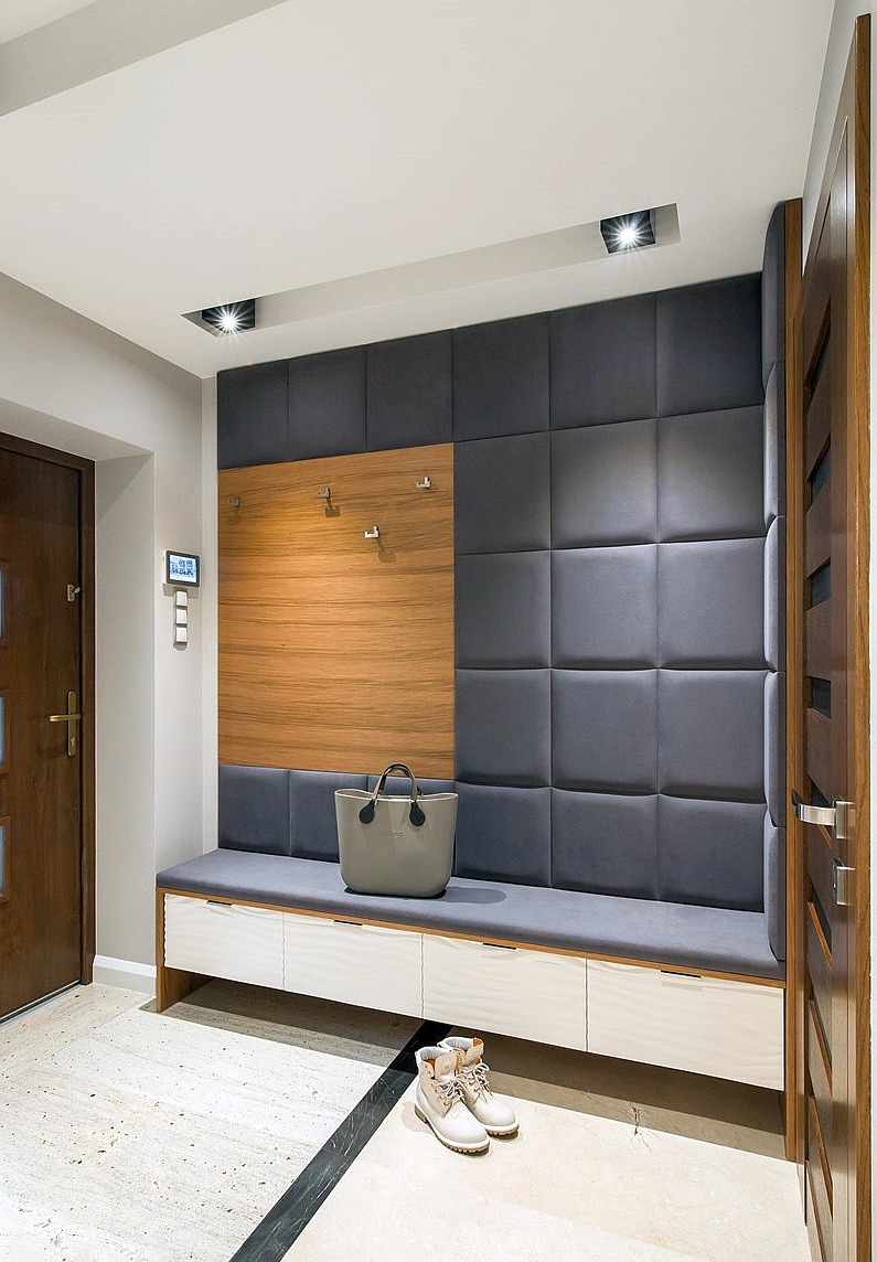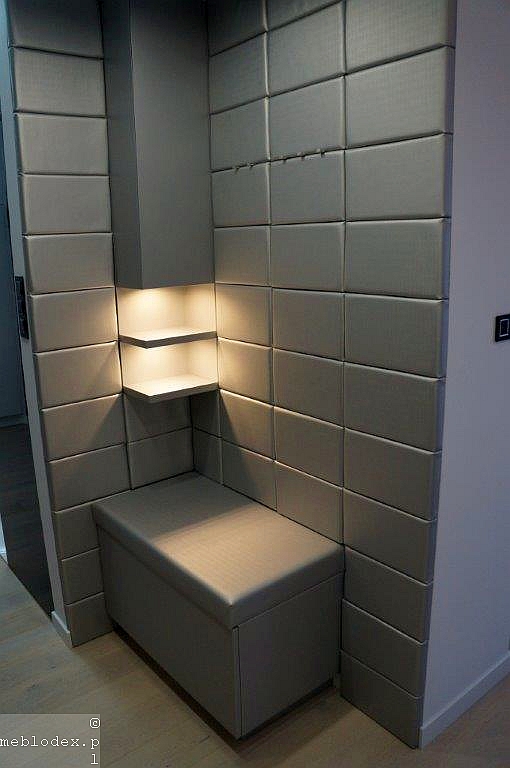 zabudowy przedpokoju - w drewnie, fornirze lub tapicerce.